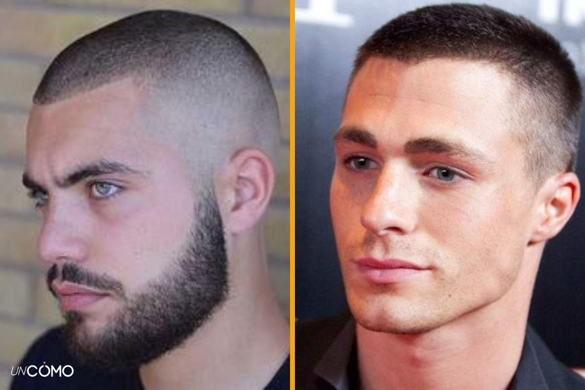 Entre el mohicano y la cabeza 100% rapada se encuentra el corte militar. Si bien se trata de una opción de cortes de de pelo de hombre ultracorto, puedes jugar con el largo de los laterales y de la parte superior para generar un mayor contraste.