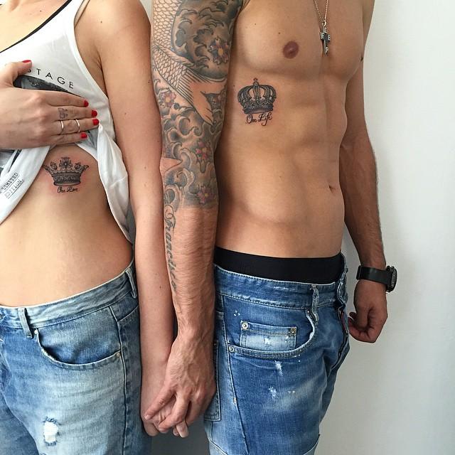Los tatuajes de coronas también pueden hacer referencia al amor incondicional entre una pareja. Él se tatuará el diseño tradicional de las coronas de los reyes y ella hará lo propio pero con las coronas de las reinas. De esta manera están estableciendo un vínculo especial e inseparable de su amor al más puro estilo cuento de hadas.