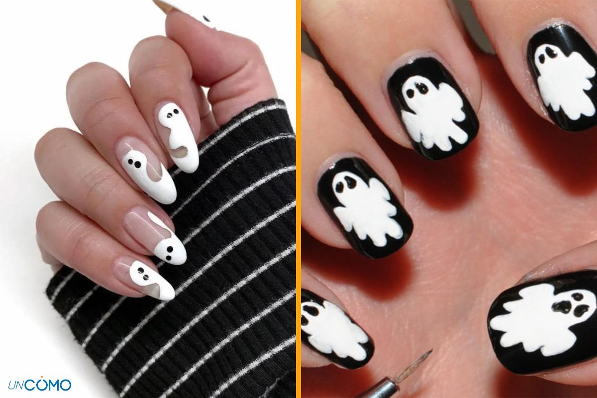 Uno de los disfraces más comunes y sencillos de hacer para Halloween es el de fantasma, y es que con muy pocos materiales puede conseguirse el aspecto deseado. Si quieres completar este disfraz con uñas de Halloween acorde o simplemente sorprender con una manicura distinta, presta atención a la que te mostramos en esta imagen.