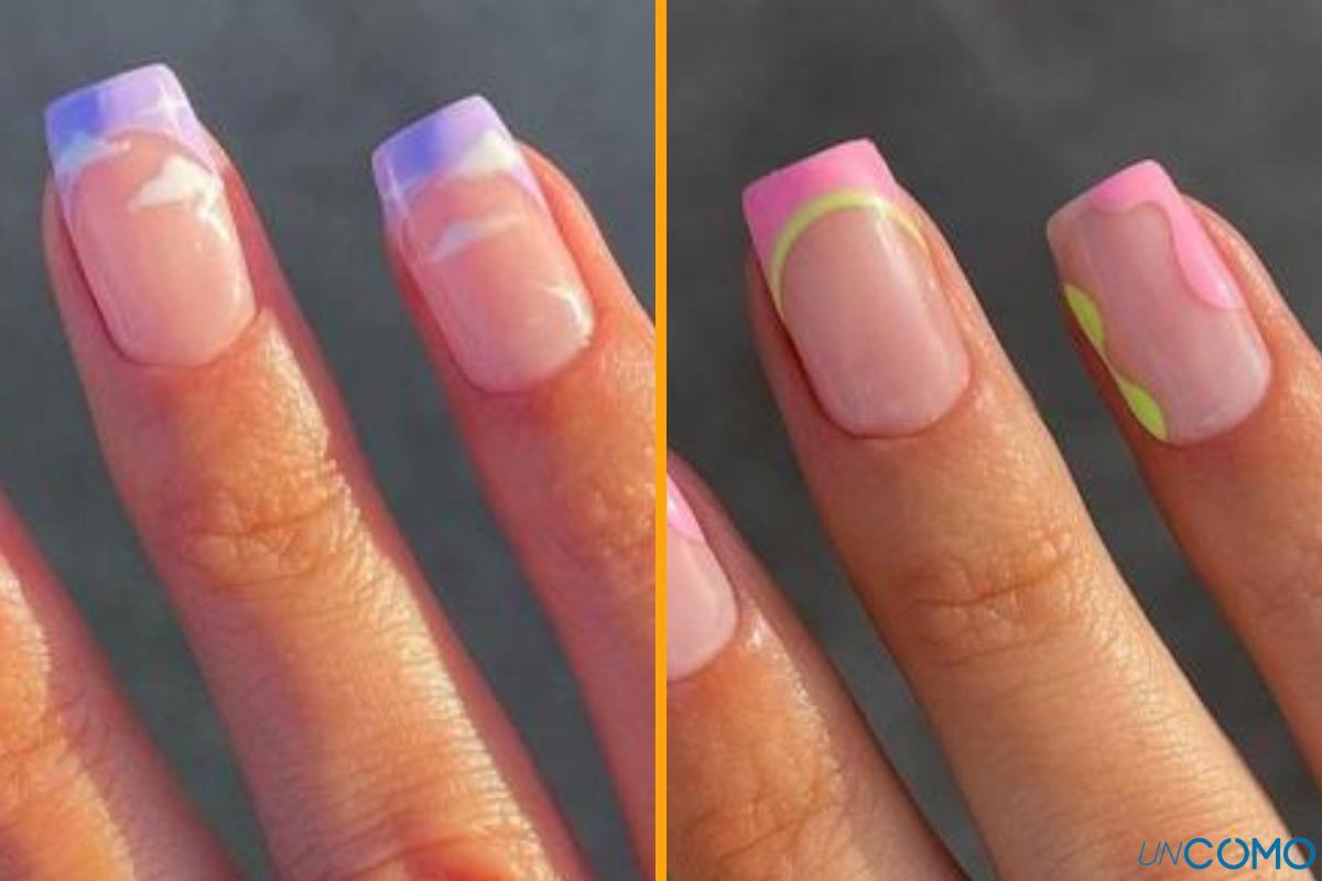 Con la llegada de la primavera es el momento de reinventarse y podemos hacerlo a través de una de las manicuras clásicas: la manicura francesa. La idea de este diseño de uñas de primavera de gel es darle una forma orgánica y de colores a la punta de la uña, para evitar la sobriedad de la francesa y darle un toque original y divertido.
