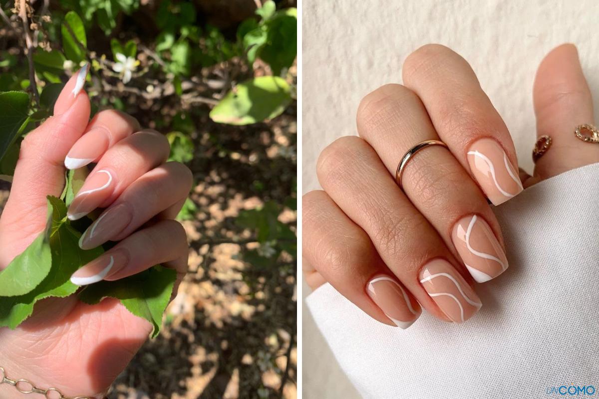 Las uñas nude son un clásico en el minimalismo. Este tono base es perfecto para quienes desean una apariencia limpia y cuidada. Para añadir un toque de diseño sin perder la esencia del estilo, los detalles blancos (como una línea fina, un pequeño semicírculo o una media luna) funcionan a la perfección. Este diseño es uno de los más usados en oficinas o para eventos donde se busca discreción y sofisticación.