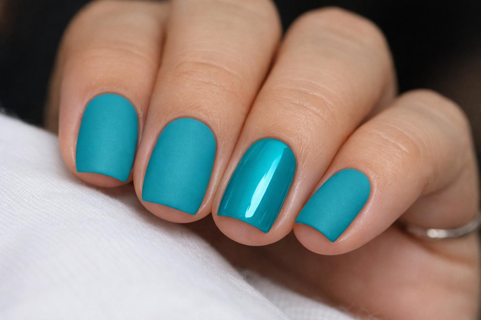 - Uñas turquesa mate con acento brillante