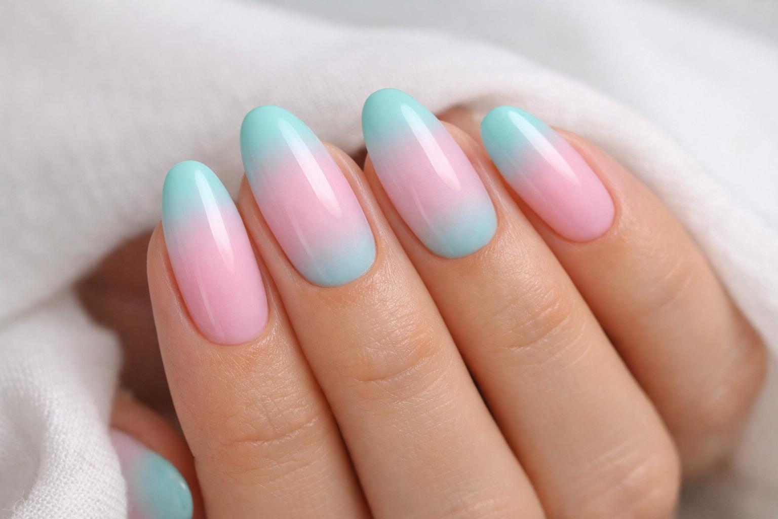 - Uñas turquesa y rosa en degradado suave