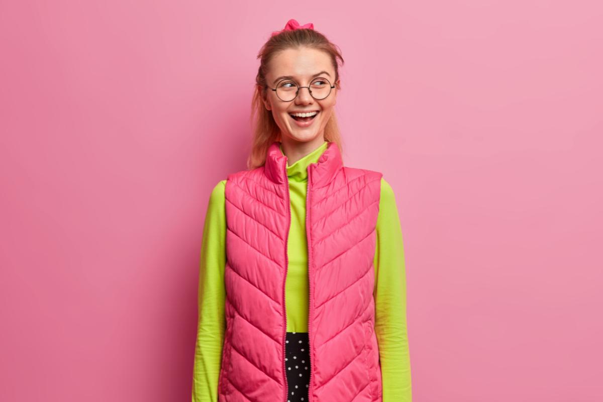 Este tipo de prenda queda genial sobre una camisa ligera o incluso un suéter fino. Una combinación perfecta para el día a día es usar un chaleco acolchado con una camisa de cuadros o una camisa básica, y leggings negros para darle un toque más informal y cómodo.