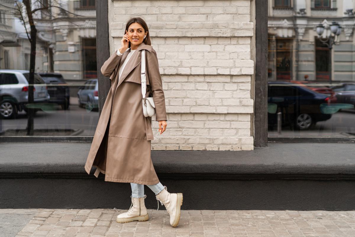 Un trench coat es una prenda clásica para el entretiempo, especialmente en otoño. Su tela ligera pero abrigada es perfecta para esas mañanas frescas que luego se transforman en un mediodía más cálido. Además, es súper versátil y puedes combinarlo con prácticamente cualquier prenda de tu armario. Una excelente opción es llevarlo con unos jeans ajustados y un par de botines de cuero o gamuza.