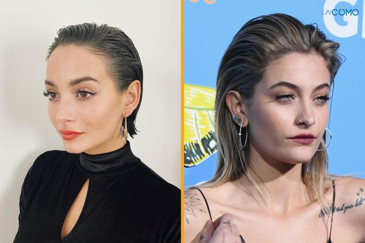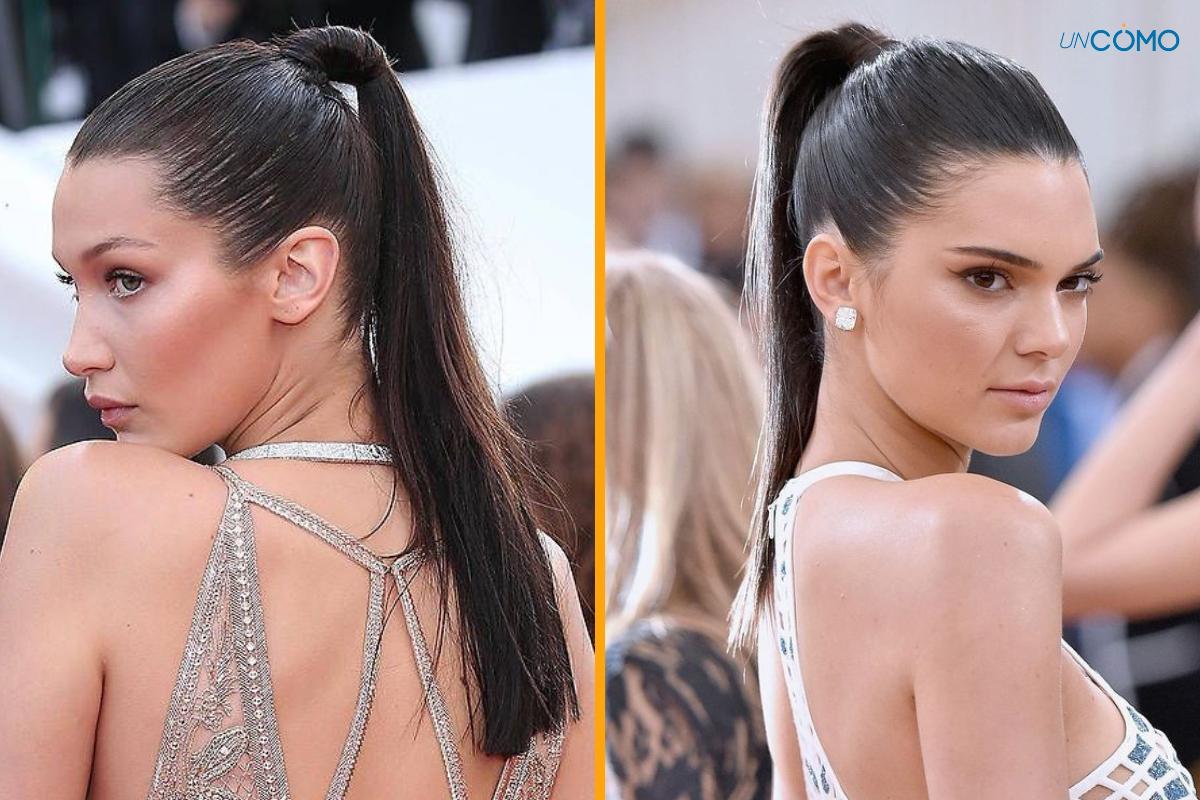 Este estilo se caracteriza por su cola de caballo pulida y brillante, con un acabado gelatinoso que le da un aspecto moderno y elegante. La gomina ayuda a mantener el cabello en su lugar y proporciona brillo, mientras que los mechones sueltos alrededor de la cola de caballo pueden aportar un toque suave y femenino.