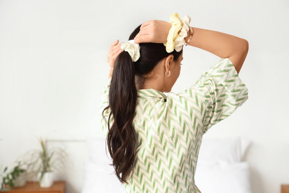No todos los peinados requieren herramientas térmicas. Puedes hacer pequeñas trenzas antes de dormir y soltarlas por la mañana para conseguir ondas naturales. También puedes usar una cinta o diadema para enrollar el cabello húmedo alrededor y lograr un efecto similar. Este método se ha convertido en uno de los peinados fáciles en 5 minutos más populares por su sencillez y porque evita dañar el cabello con calor.