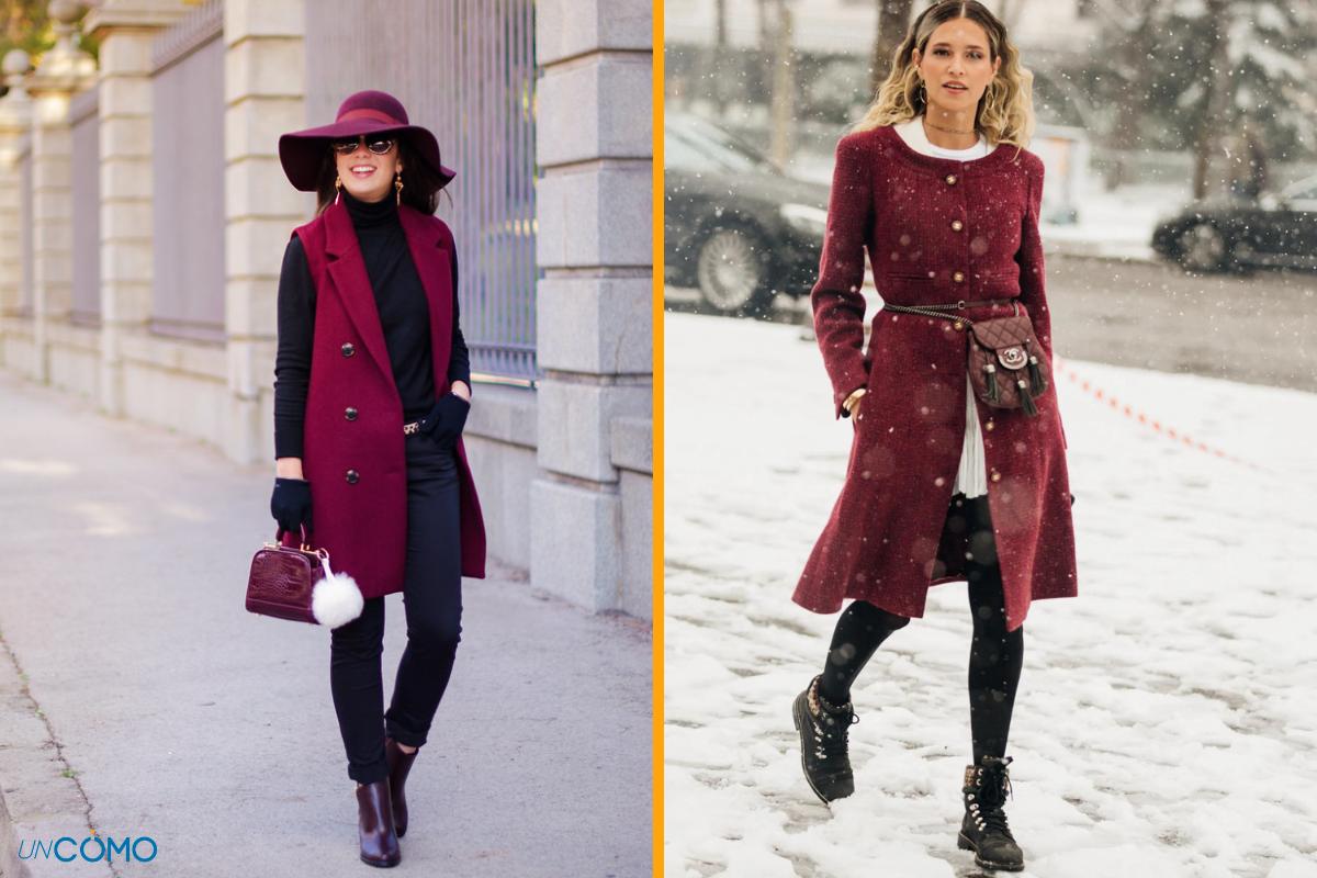 El burdeos es perfecto para abrigos, jerséis, vestidos y faldas, y permite crear conjuntos tanto formales como más casuales. También funciona muy bien en complementos y detalles, como bufandas, zapatos o bolsos, aportando un toque de estilo refinado a cualquier conjunto invernal.