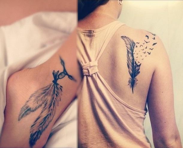 Otro de los diseños favoritos de las chicas son las plumas. Estos tatuajes pueden simbolizar aspectos tan variados como el amor (la flecha de Cupido que atraviesa el corazón de dos amantes), también puede ser signo de libertad ya que las plumas forman parte del cuerpo de los pájaros e incluso pueden ser el símbolo de la escritura puesto que antiguamente se empleaban plumas para poder escribir.