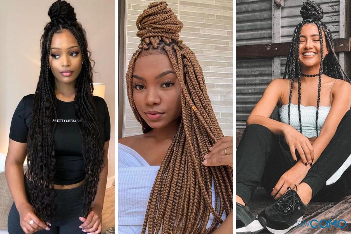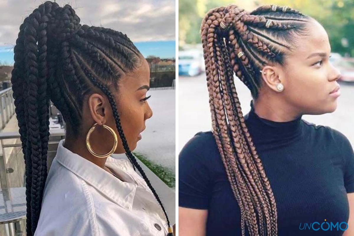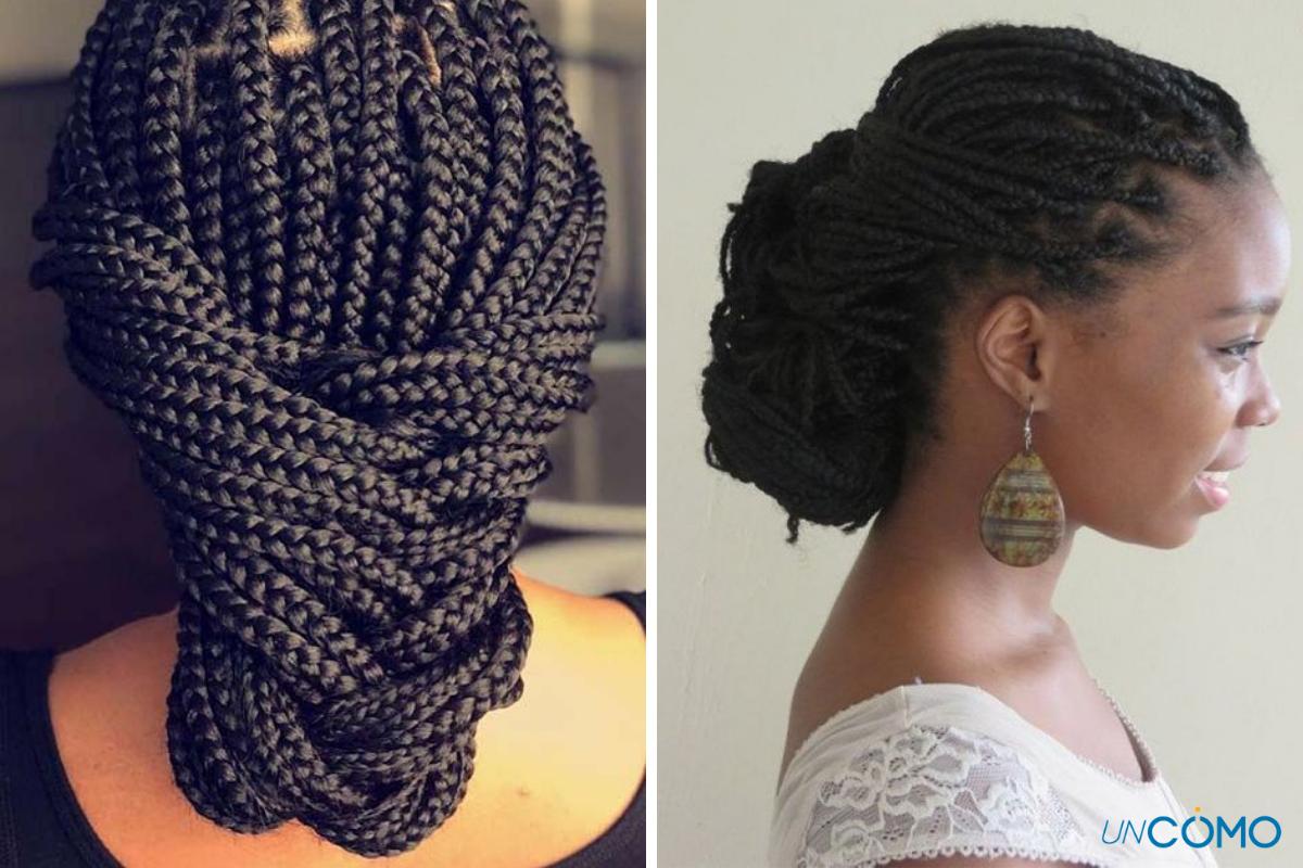Para saber cómo hacer estos peinados con trenzas africanas paso a paso, lo primero es aprender a hacértelas. Descubre cómo hacer trenzas africanas haciendo clic en el enlace.