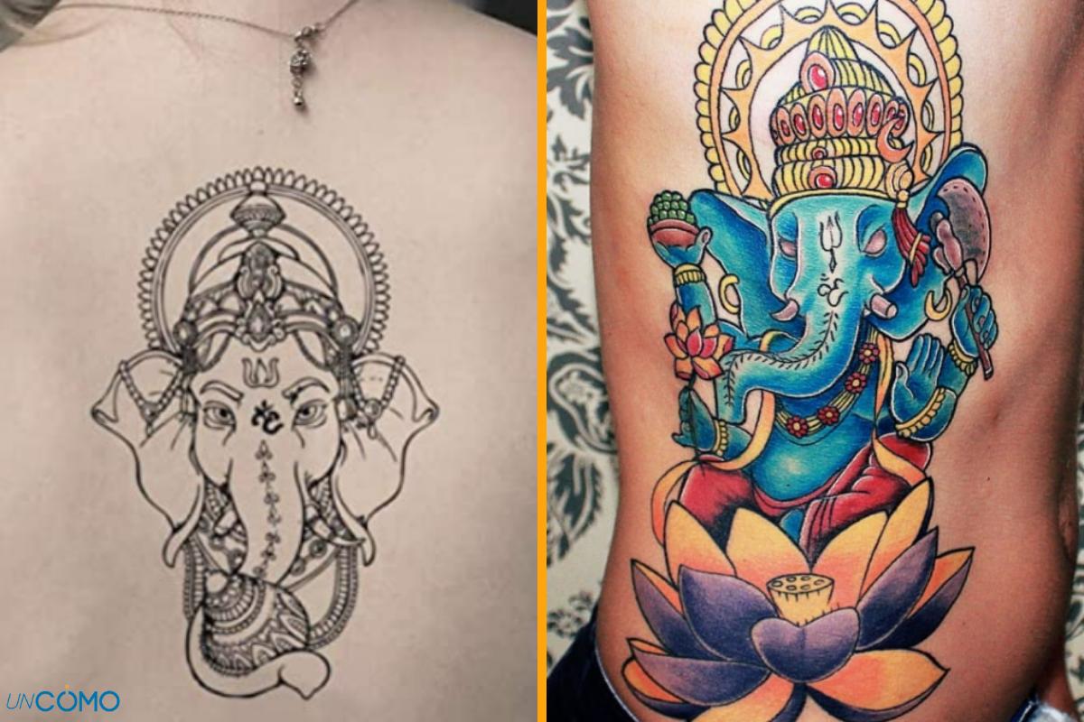 Ganesha, representada con la cabeza de un elefante, es otro de los grandes símbolos dentro de la cultura hindú ya que representa la sabiduría y el conocimiento. Pero, además también es un talismán de la fortuna, teniendo el poder de atraerla. Es un tipo de tatuaje que admite muchos diseños y es muy versátil. Normalmente, se suele usar la parte del brazo, la pierna o la espalda para aprovechar de hacer un diseño vertical.