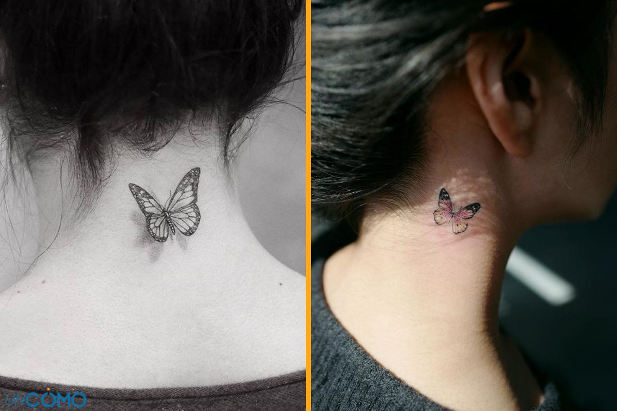 Si quieres que tener un tatuaje en el cuello para mujer con significado, podrás jugar con el diseño y el color de la mariposa para darle todavía un mayor simbolismo. Por ejemplo, la mariposa azul se relaciona con la buena suerte, la rosa con el amor romántico, la blanca con la pureza... Te damos más ideas en nuestro post Significado de los tatuajes de mariposas.