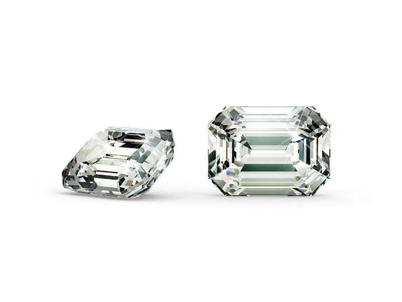 La talla esmeralda se caracteriza por presentar sorprendentes y originales formas rectangulares. Su similitud al corte de las esmeraldas, piedras preciosas de colores verdosos y azulados, le ha dado nombre a esta sofisticada talla. El diamante en talla esmeralda tiene entre 48 y 50 facetas. Estas superficies planas que forman el exterior del diamante tras el corte, lo cual produce un efecto de luz particular, ayudan a presentar una talla proporcional y simétrica en el diamante. Si bien tiene un poco menos de brillo que la talla brillante, las esmeraldas cuentan con una claridad increíble que dotan al diamante de una elegancia particular.