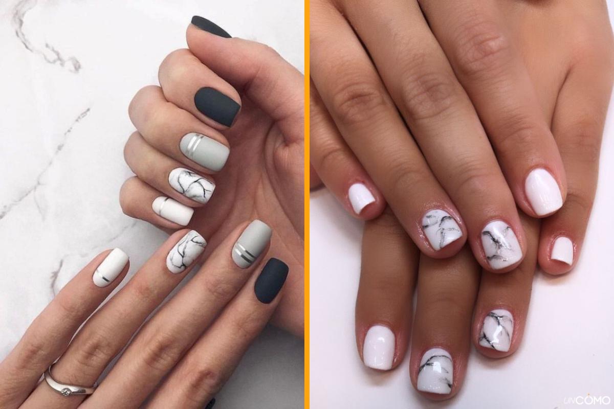 ¿Tienes un evento especial? El efecto mármol es una de las tendencias más elegantes y sofisticadas en el mundo de la manicura. Este diseño combina tonos como el blanco, negro y gris para simular el aspecto del mármol en las uñas. Es perfecto para quienes buscan un estilo refinado y moderno. Puedes optar por un diseño completo o aplicarlo solo en una o dos uñas para un efecto más sutil.