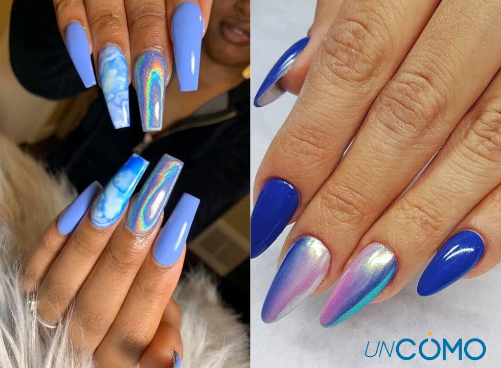 Uñas holográficas azules
