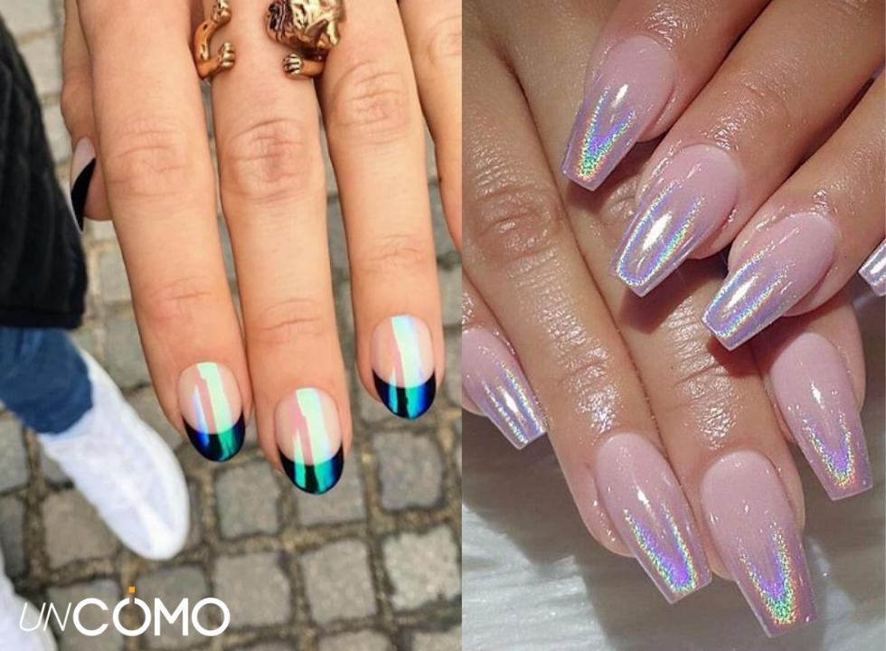 Una de las maravillas de esta técnica es que combina con cualquier tipo de forma de uña. Ya sea que prefieras las uñas redondas, cuadradas, en forma de almendra o stilettos, el efecto iridiscente es más que suficiente para atraer la mirada hacia tus manos. ¿Deseas impactar en una salida con tus amigas o en una noche de fiesta? unCOMO te explicamos todo sobre las uñas holográficas: cómo hacerlas y diseños para lucirlas. ¡Sigue leyendo!