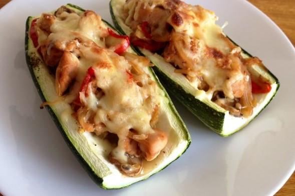 Calabacines rellenos de pollo
