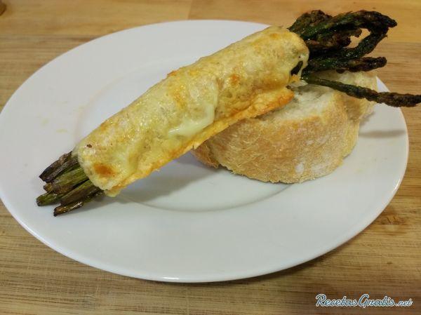 Espárragos trigueros con jamón y queso