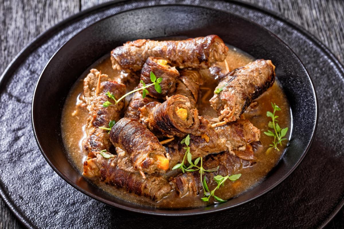 Otro de los platos más sobresalientes de la gastronomía de Alemania son los Rouladen, unos rollos de carne de ternera rellenos de mostaza, cebolla, pepinillo y tocino. Tras rellenarlos, son cocinados lentamente en salsa hasta quedar tiernos y jugosos. Sin duda, es un plato muy tradicional en el país y suele estar presente en ocasiones especiales o comidas familiares. Los Rouladen son, sin lugar a duda, uno de los platos más elaborados y hogareños de la comida típica alemana.