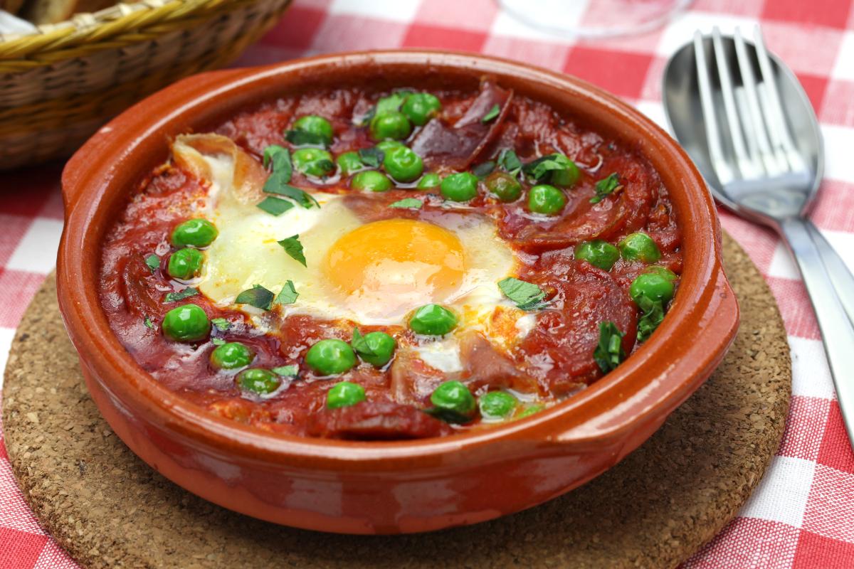 Es una de las recetas más tradicionales de Sevilla. Un plato sencillo elaborado con huevos y hortalizas. En un plato de barro o una cazuela se pone una base de tomate frito con diversidad de hortalizas crujientes y dos huevos crudos.