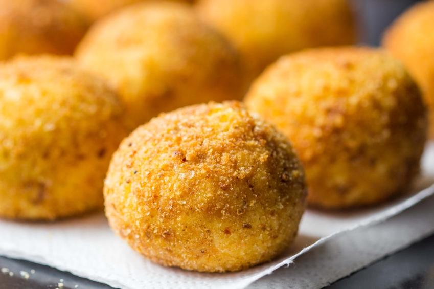 Las croquetas o bolitas de arroz son un clásico de la cocina siciliana y se convierten en una idea perfecta para aprovechar las sobras de la paella, no solo el arroz sino los mariscos o la carne, dependiendo del tipo de paella que hayas hecho.