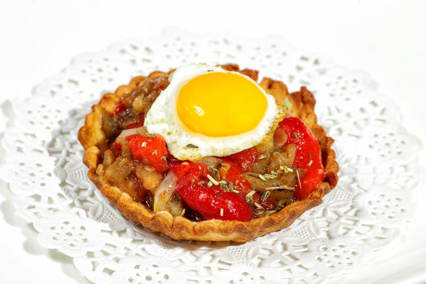 Puedes comprar la escalibada ya hecha o los ingredientes ya asados, pero también puedes hacerlo en casa. Asa todos los ingredientes de la escalibada en el horno, intenta no abrir el horno muy seguido para comprobar como va, y agrégale aceite, sal y un poco de pimienta. Cuando veas que está bastante asado todo pero aún le queda un poco para terminar de asarse bien, retira las verduras del horno para trocearlas en trozos pequeños o en tiras y colócalos en las tartaletas, pon un en cada una encima de las verduras y espolvorea un poco de orégano. Vuelve a meter todo ya listo en el horno y deja que termine de cocerse todo despacio, a una temperatura no muy alta. Cuando veas que las verduras y el huevo ya están del todo cocidos retira las tartaletas y ya las tienes listas para servir.