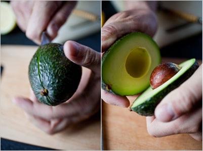 Por eso comienza por cortar tu aguacate por el medio usando un cuchillo bien afilado. Separa con suavidad un lado del otro, cuando el aguacate se encuentra en su punto es posible hacerlo con facilidad.