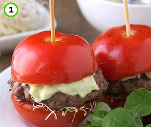 Así pues, para poder preparar este original sándwich tan solo deberemos lavar bien el tomate, partirlo por la mitad y colocar entremedio los ingredientes que queramos. Si optamos por preparar el plato de la imagen debes saber que el queso y la hamburguesa deberán cocinarse aparte ya que si calentamos el tomate este puede volverse blando y, por tanto, el plato se nos puede desmontar.