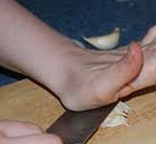 Otra forma de machacar los ajos ya pelados es ponerlos debajo de un tabla de cortar y hacer un golpe seco encima de la tabla al tener más superficie que el mortero se machaca mejor. Lo mismo se puede hacer con un cuchillo grande, pero mejore que antes le pongas un poco de sal al ajo.