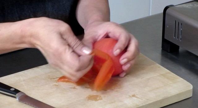 Ahora podemos “despegar” la piel del tomate de una manera extremadamente sencilla. Si quieres saber como pelar un tomate aquí te lo explicamos.