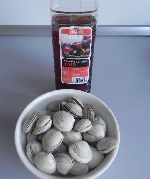 Otra buena solución para lavar las almejas y que suelten toda la arena es ponerlas en agua con vinagre. Será necesario que las dejes sumergidas durante algún tiempo, una media hora estará bien para eliminar la arenilla y seguidamente lávalas bien bajo el grifo.