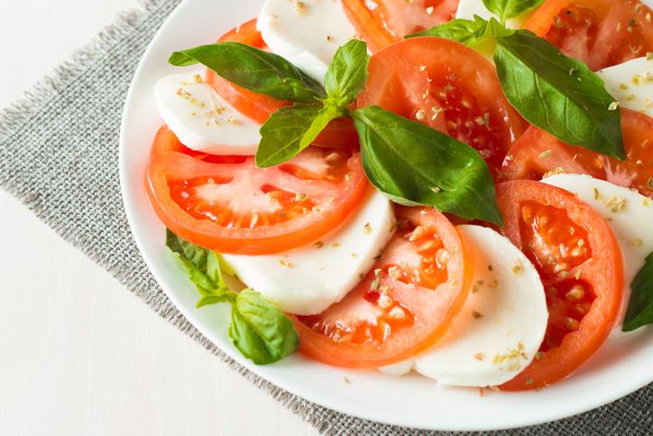 Ensalada de tomate, cebolla y queso de búfala
