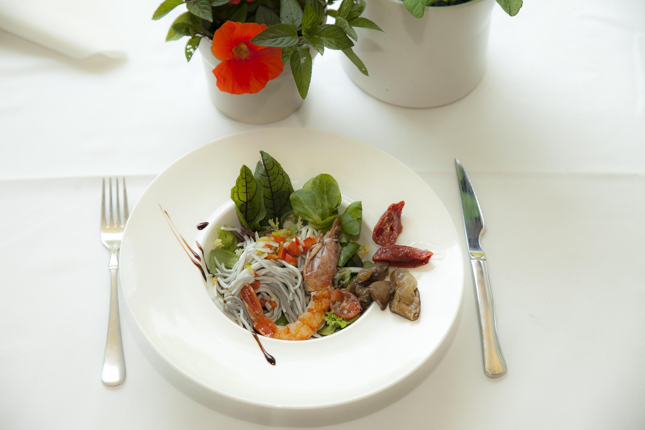 Ensalada de gulas y gambas