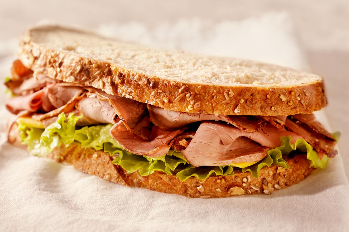 Prepara tu bocadillo untando los panes con una crema de yogur (yogur batido + pepino licuado + gotas de limón) y pon una loncha de queso chédar (más proteínas de la leche) junto a la carne y unas hojas de lechuga o de rúcula. ¡Sano y rico!