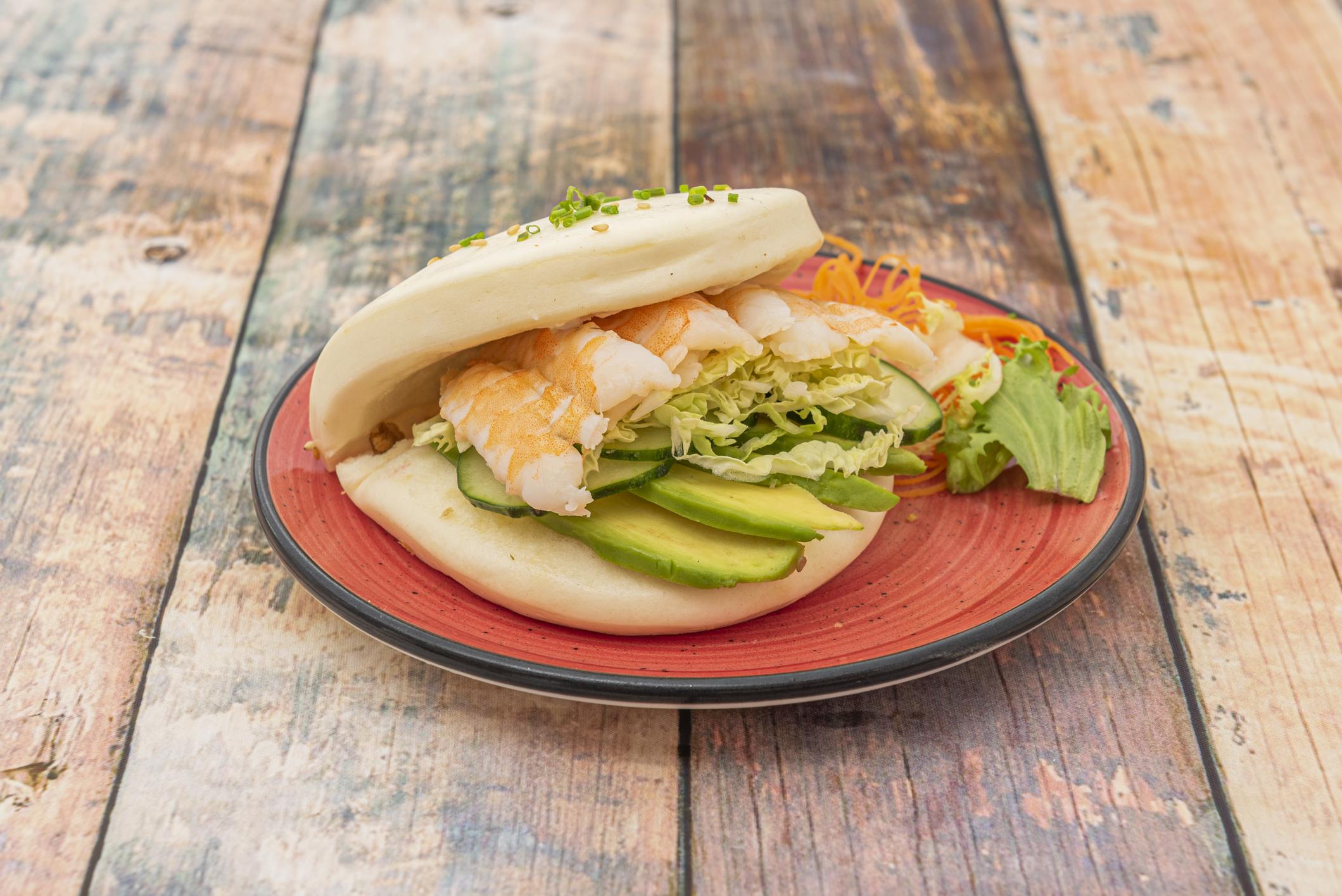 Pan bao relleno de langostinos