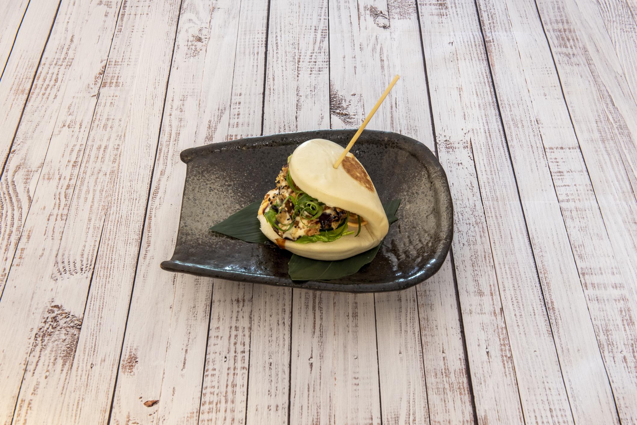 Pan bao relleno de pulled pork y salsa bourbon