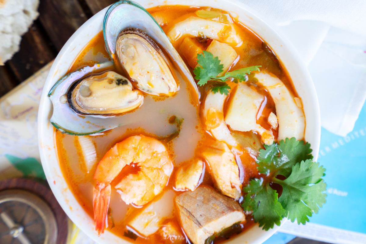 Un plato marinero y reconfortante que podrás disfrutar en distintas regiones de España, como Galicia, El País Vasco o las Islas Baleares, además de obtener otros nombres como "suquet" o "caldeirada". Esta sopa suele prepararse con mariscos frescos, como almejas, mejillones, langostinos y calamares, todo ello cocido en un sabroso caldo que se enriquece gracias al tomate, pimiento y ajo. Sin duda, se trata de una opción de cuchara ligera y cargada del auténtico sabor marinero gracias al protagonismo del marisco. ¡Una delicia!
