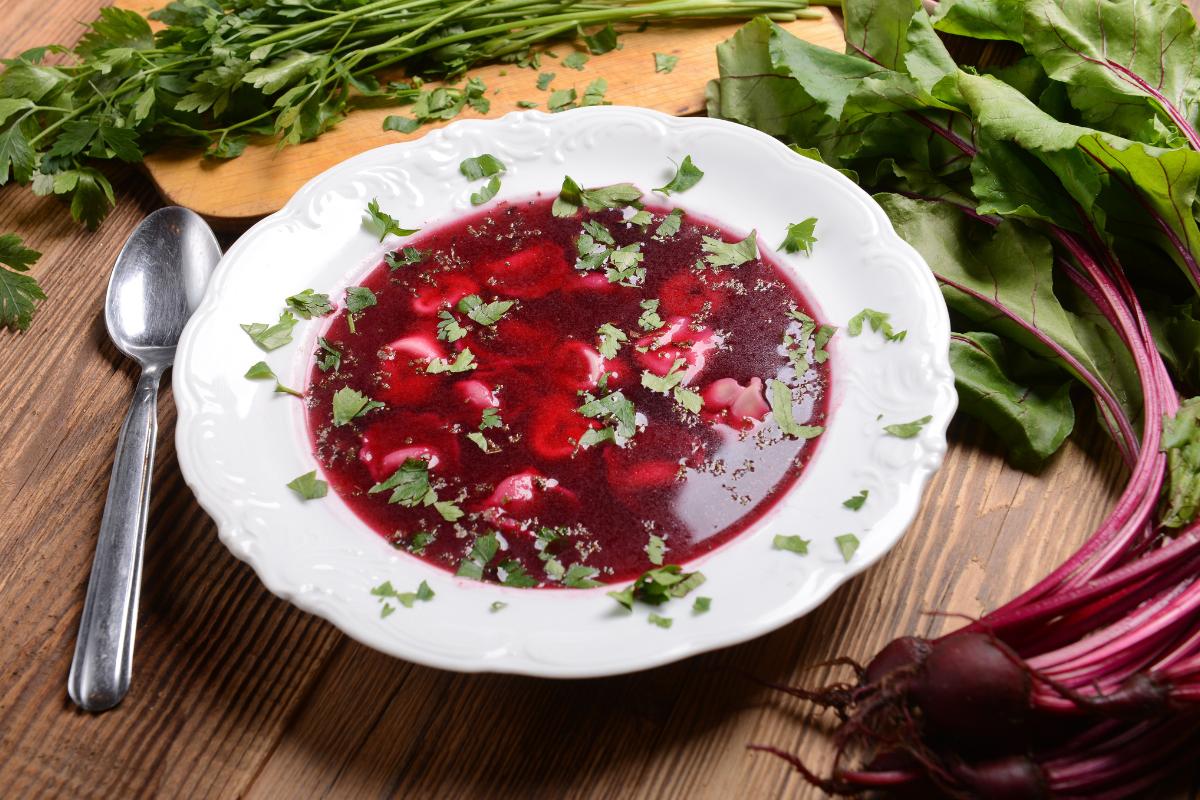 El borscht es una sopa vibrante y sabrosa originaria de Ucrania, pero popular también en Rusia y otros países eslavos. Esta sopa, cuyo color rojo intenso proviene de las remolachas, se elabora tradicionalmente con carne, zanahorias, cebollas y repollo. A menudo se sirve con una cucharada de crema agria y eneldo fresco, lo que le aporta un sabor cremoso y refrescante.
