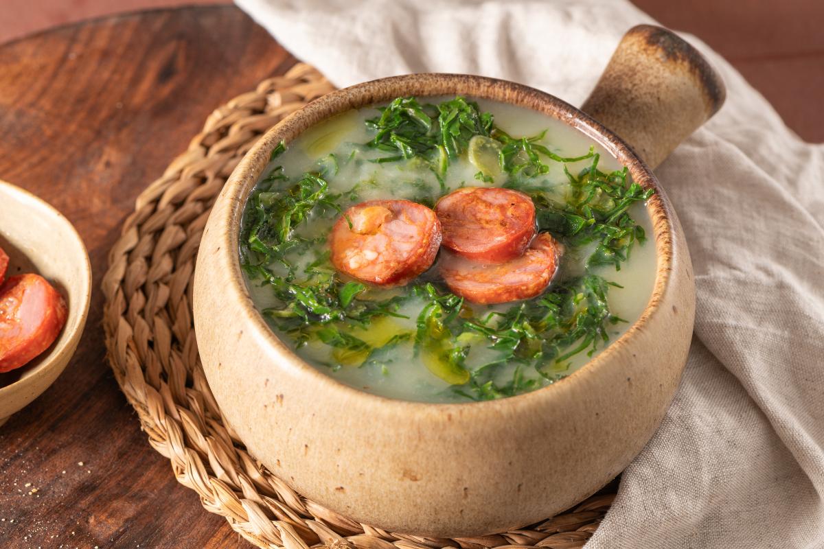 El caldo verde es una de las sopas más queridas de Portugal, especialmente en la región de Minho. Hecha con col rizada cortada finamente, patatas, cebolla y rodajas de chorizo, es una sopa sencilla, pero deliciosa que representa la tradición culinaria portuguesa. Este plato es popular en celebraciones y eventos especiales, aunque también se disfruta durante el día a día. Cremosa, nutritiva y sabrosa es perfecta para una cena ligera o como entrada. Su simplicidad y su sabor único, gracias al toque del chorizo, la hacen irresistible para quienes buscan una sopa con personalidad y tradición.