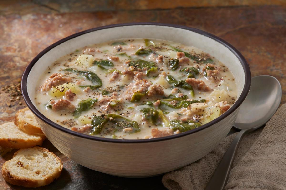 La Zuppa Toscana, o sopa toscana, es un clásico italiano reconfortante y delicioso, típico de la región de Toscana. Esta sopa se elabora con ingredientes como col rizada, patatas, salchicha italiana y ajo, todo en una base cremosa de caldo y crema. El resultado es una sopa rica y sabrosa, perfecta para los días fríos. La textura de las patatas y la carne le da un cuerpo delicioso, mientras que la col aporta un toque fresco y saludable.