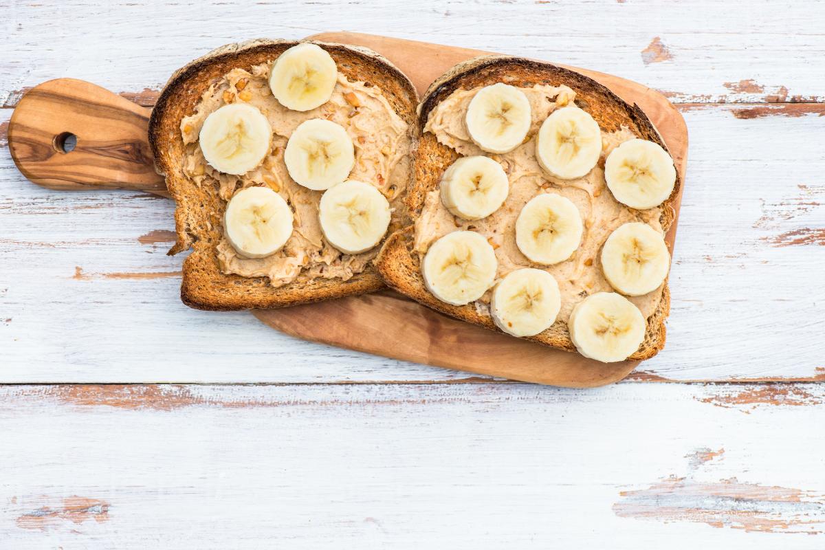 - Tostadas integrales con plátano y crema de cacahuete