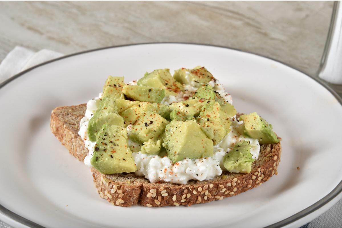 Un desayuno clásico para los que buscan energía y nutrición desde primera hora. Solo necesitas pan integral tostado, unas cucharadas de queso cottage y aguacate en láminas o tacos pequeños. Coloca el queso sobre el pan, añade el aguacate y completa con unas semillas de sésamo, sal, pimienta y un chorrito fino de aceite de oliva. Puedes incorporar también tomate cherry o huevo cocido para una versión más completa.