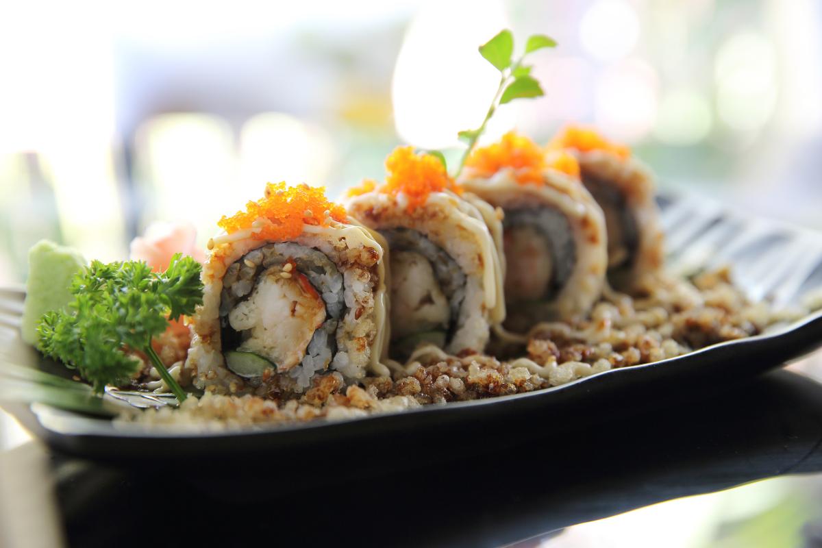 Si buscas una combinación exótica y dulce, el sushi de mango y langostinos será una elección perfecta.