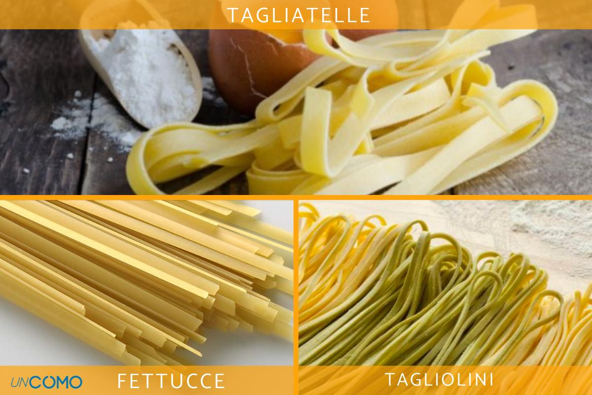 Es la pasta más popular entre las de cinta. Con derivación del verbo 'tagliare', cuyo significado en italiano es cortar. Las cintas de esta pasta oscilan entre los 8 mm y 1 cm de ancho. Tradicionalmente, los tagliatelle proceden de Bolonia y se venden en nidos enrollados, que durante la cocción se desenrollan.