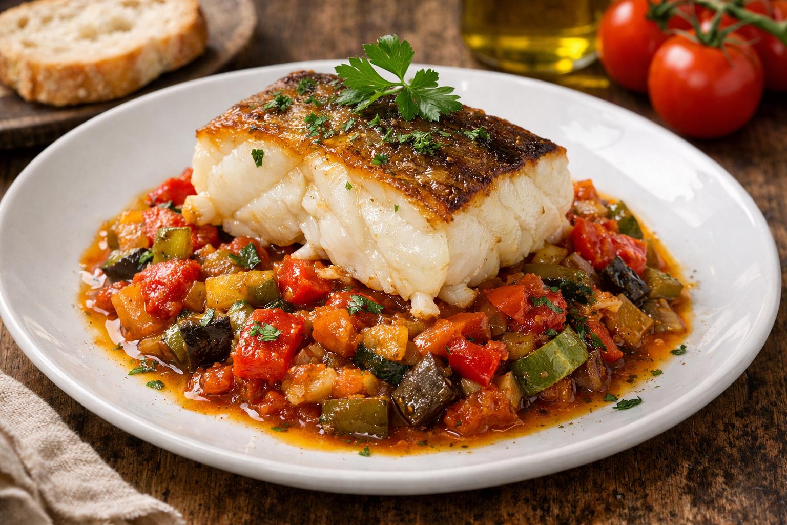 Bacalao con pisto de verduras: receta fácil y rápida