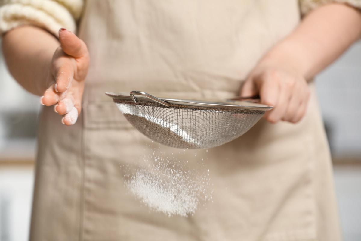 Incorpora ahora los ingredientes secos a la masa: empieza agregando la harina tamizada mientras mueves la masa con movimientos envolventes.