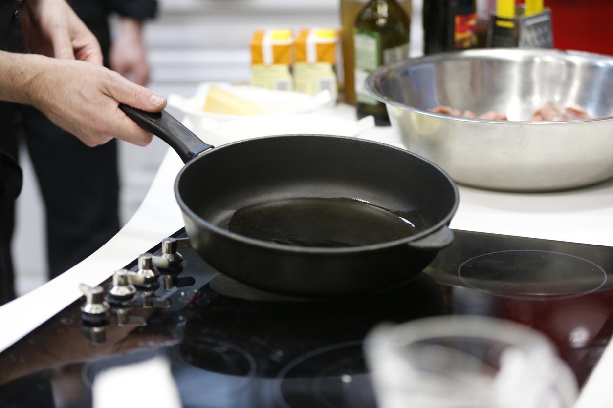 Si prefieres la segunda opción, los pasos te resultarán igual de sencillos. Vierte el aceite que vayas a aromatizar en una sartén y ponla a fuego bajo. Es importante que el aceite no se caliente en exceso, debe alcanzar una temperatura en torno a los 40 ºC, nunca superior (necesitarás un termómetro de cocina), porque no se trata de freír la guindilla y los ajos, sino de macerarlos.