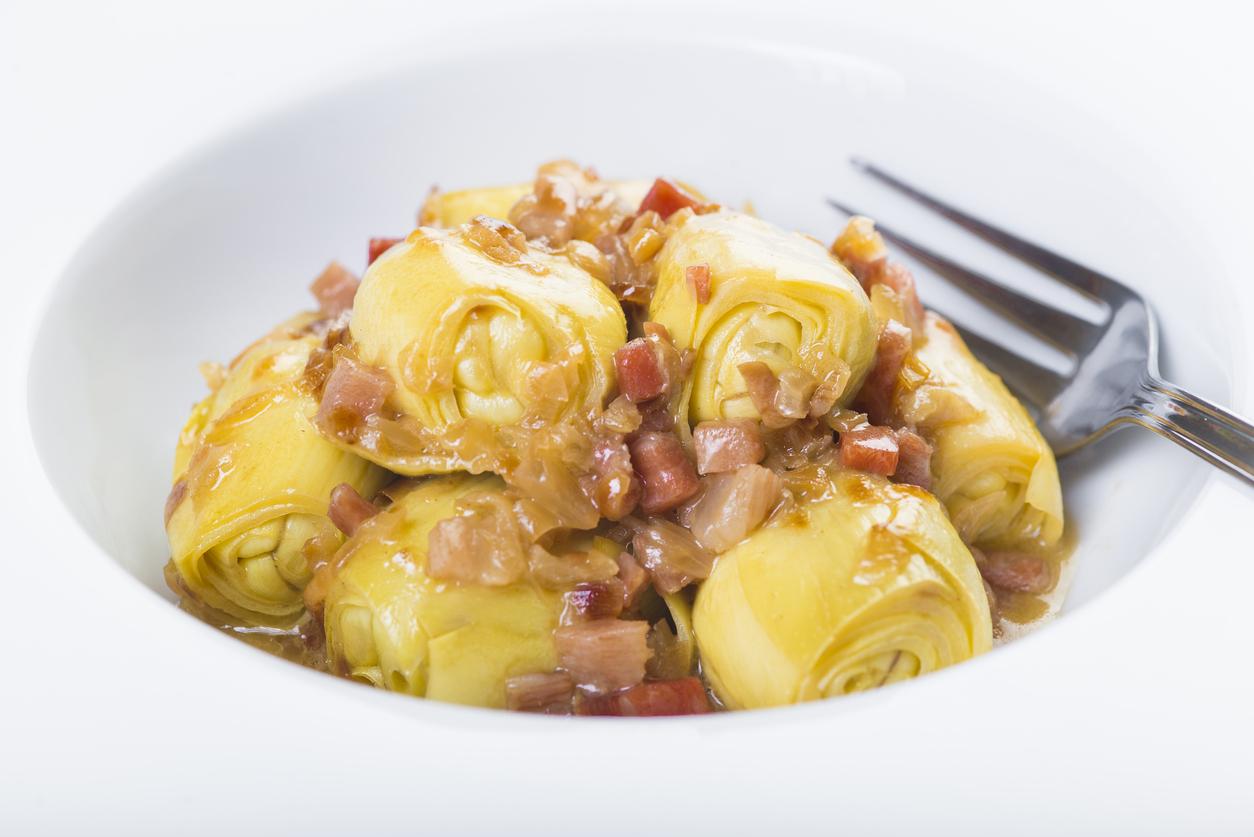 Cómo hacer alcachofas con jamón y cebolla
