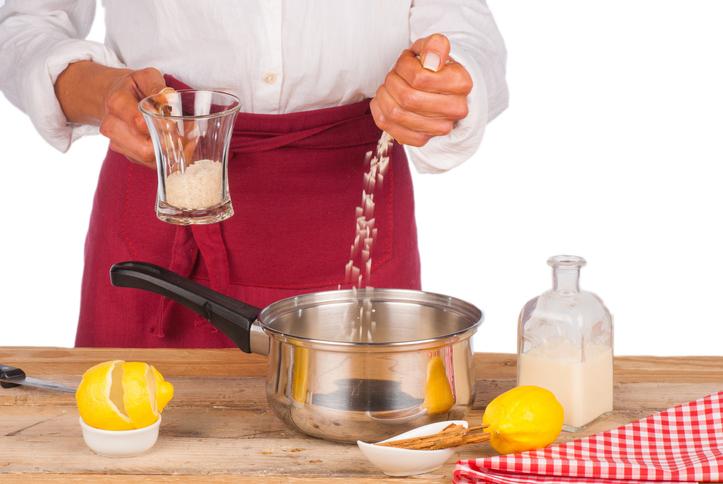 Tras dejar apartado el arroz hervido, es el momento de calentar la leche de coco en una olla. Ralla o pela la piel del limón con cuidado de no rallar la parte blanca, pues aportará un sabor amargo que no interesa en esta receta. Añade el limón y la canela, espera a que comience a hervir.