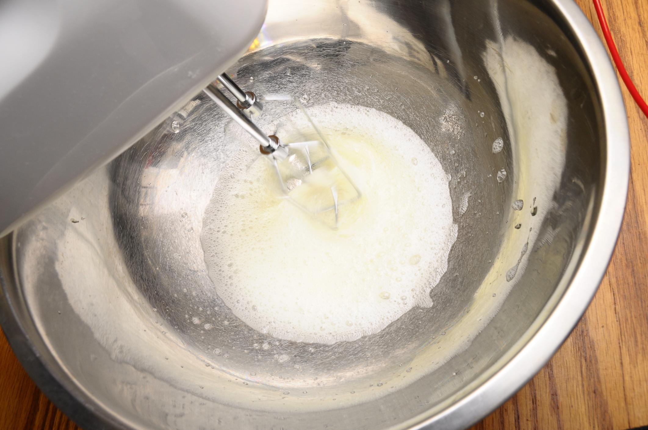 Una vez conseguida la masa, coge las varillas y de forma suave incorpora las claras a punto de nieve en la masa.